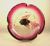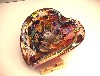 Rotes Grundglas mit zerplatzter Silberfolie mit reichlich Murrinen- und Zanfericoeinschlüssen, Schale in Herzform gearbeitet, Klarglasüberfang.