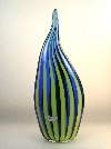 Vasenobjekt in a Canne Technik in den Farben royalblau und neongrün, unter dem Stand mit Formentello Murano ritzsigniert und Label mit Eli Vetri D´Arte, Murano, Italy