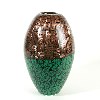 Die untere Hälfte ist mit einem grünen Murrinenmuster überzogen, die obere Hälfte ist mit einem Schachbrettmuster von Kupferaventurinstücken verziert, anschliessend ein kräftiger Klarglasüberzug.