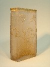 Caramelfarbenes Glas mit aufgelegten feuerpolierten floralen Ätzdekor, -selten- dreieckige Grundform.