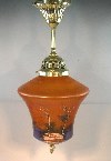 Klares Glas wurde aussen mit einer Winterlandschaft bemalt, teilweise Flachfarbe, teilweise erhabene Emaillefarbe, das besondere ist jedoch die innenliegende Irisierung der Lampe. Die Montur wurde komplett überarbeitet, das Messing aufpoliert und ist garantiert aus der Art-Deco Zeit, die Verkabelung wurde auf Grund Ihrer Brüchigkeit erneuert. Das untere Endstück wurde vor längerer Zeit ergänzt.