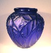 Blaues Glas, teils satiniert, teils geblänkt, mit Grashüpfern im Dekor “Sauterelles in electric blue”. Das electric blue Glas ist das seltenste in der die Sauterelles Vase produziert wurde, auch sind diese fast gar nicht in Europa anzutreffen, da die besonders kräftigen Farben für den südamerikanischen Markt hergestellt wurden. Auch diese Vase war eine lange Zeit in Buenos Aires, Argentinien.