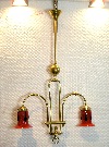 Originale Art-Deco Lampe mit roten Schirmen und schwarzen Glastropfen Entwurf des Schirmdesign: Michael Powolny.