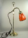 Sehr selten zu findende Lötz Stehlampe mit Messingmontur und orangem (candia) Astglas. Der Schirm dient nur zur Veranschaulichung und sollte nur ein Beispiel sein. Die Lampe wurde komplett zerlegt und das Messing poliert, die Elektrik auf den neusten Stand gebracht, siehe auch die vorher-nachher Bilder.