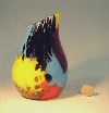 Die Mündung ist verwärmt, der Stand hat einen fein sauber auspolierten Abriss (für meine Freunde: Ja, es ist der mit dem Birnenholz auspolierte Abriss!), siehe Pic. Farbloses Glas hat flächige Pulvereinschmelzungen aus verschiedenen opaken Farben und Aventurin, sowie zwei klaren Glasfeldern in rot und petrol. Die Vase ist original aus den 50er Jahren, keine neuzeitliche Kopie.
